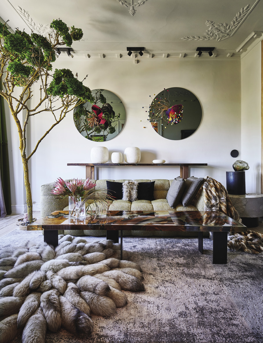 people can’t verbalise it, they can certainly sense it when they see my work. It’s like your soul is getting a hug.” He often constructs fountains and lavish flower arrangements, using sustain able preserved flowers to add colour, tranquillity and organic experiences. Sustainability is always on his mind, and in Thomas’ opinion the “use and throw away mentality” is now a thing of the past. He believes that we should buy less and buy well-crafted furniture that can last a lifetime or be re-used. When asked about his design philosophy he says, “I wish to expand the gen eral perception of design. My designs are often inspired by nature so, wheth er it is a room I’m decorating or a body I’m creating jewellery for, I’m in a sense landscaping. I work intuitively with my clients. They are not just buying furniture or jewellery; they are investing in pieces of art that reflect their own sense of unique beauty. My work is an expression of their personal freedom, authenticity and limitlessness in a new form.”