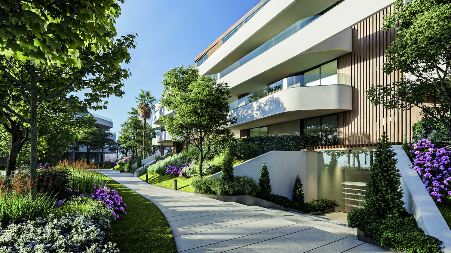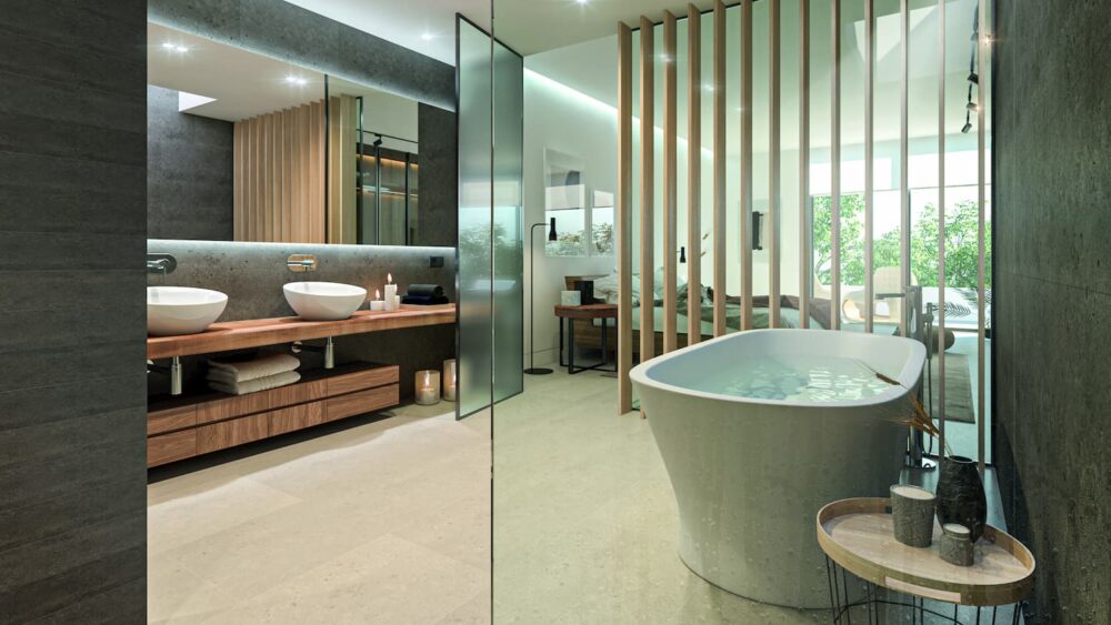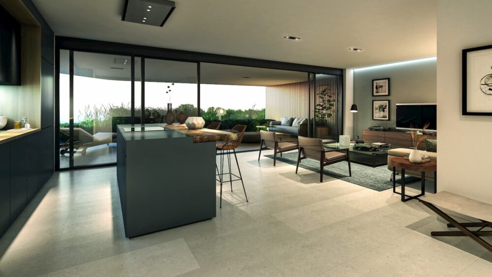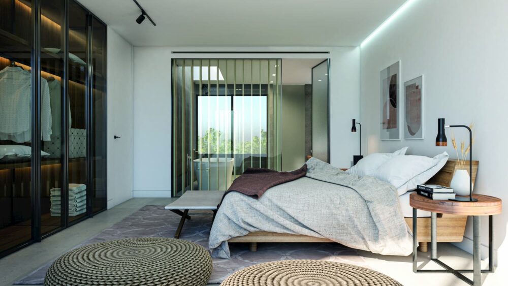 The open-plan living spaces, with the aforementioned underfloor heating and Aerotherm air-conditioning, ensure comfort throughout the year. The development will feature renewable energy sources to reduce reliance on fossil fuels, and all the properties are built to comply with the highest energy efficiency standards and the latest home automation systems.