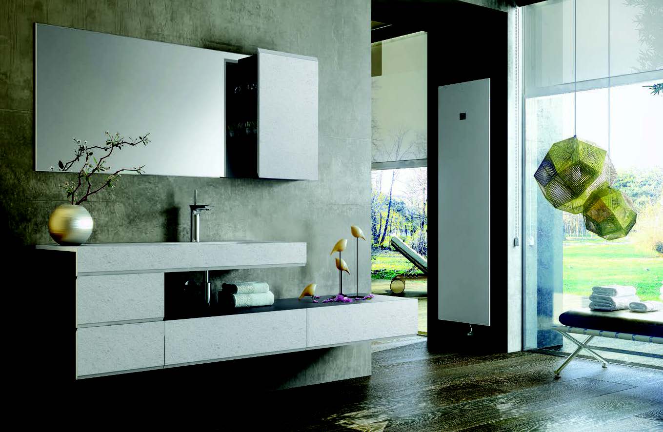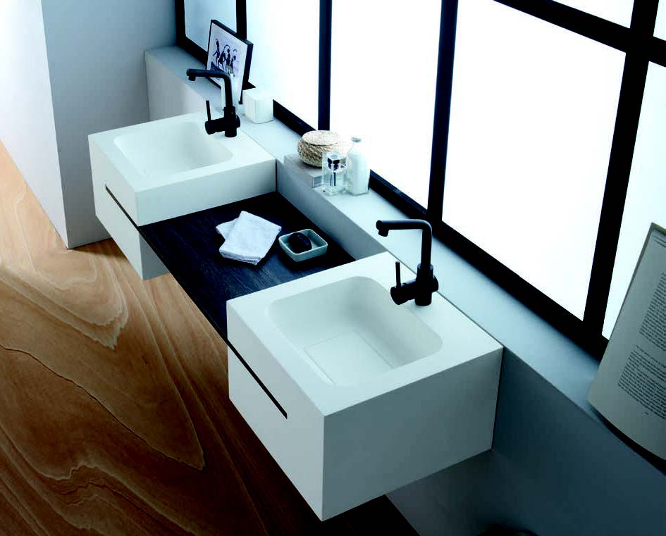 Below, The stunning Calabria suspended washbasin is from the Sold Surface range by Bathco. Available from Mercasur in Estepona (www.mercasurestepona.com).