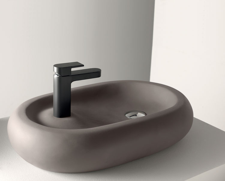 The oval Cieza table-top washbasin from the Cement range by Bath Co has an eye-catching contemporary