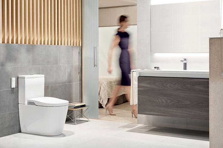 The Inspira In-Wash® WC by Roca is a back-towall vitreous china close-coupled smart toilet with a dual outlet. It has an air dryer, remote control, LED lights and five nozzle positions. Available from Proinco in Estepona (Pol. Ind. Estepona and Avda. Juan Carlos I), Pol. Ind. La Ermita in Marbella and C/Isla Cabrera in Fuengirola, plus various outlets in Málaga
