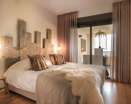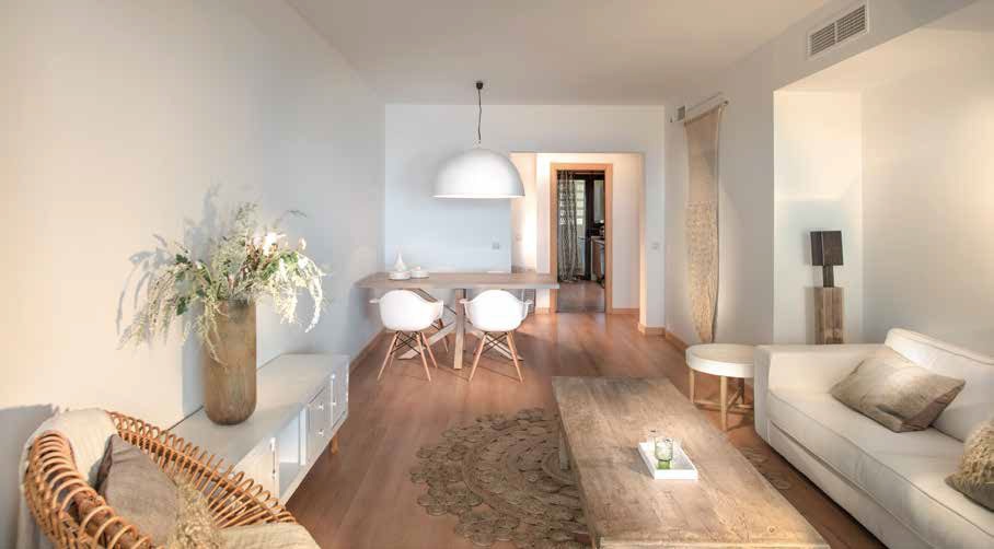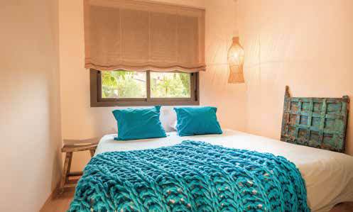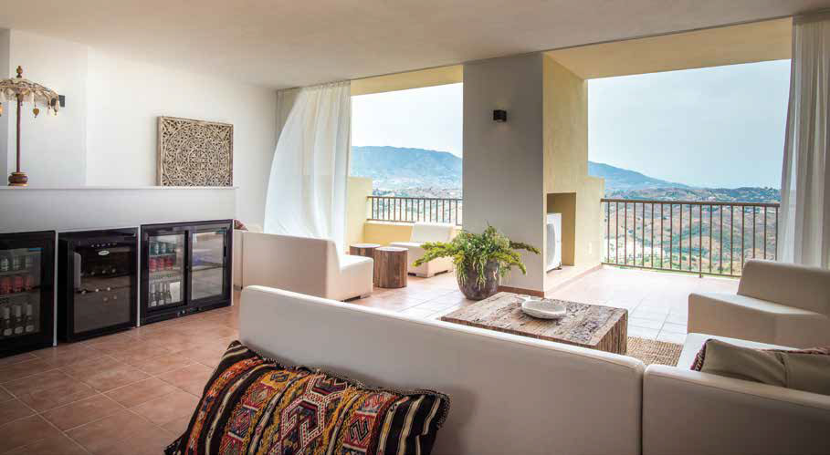by white and sandy hues, except for the second bedroom where they introduced a strong turquoise. The outdoor covered terrace, which will be used in this particular apartment to greet clients with drinks, includes two lounge areas framed by handmade yute rugs. “We wanted to make sure the indoor and outdoor followed the same style, and the terrace still felt as warming as the indoor, as here on the Coast we spend so much time outdoors.” The panels on the wall and the outdoor curtains also add a cool, summery look.