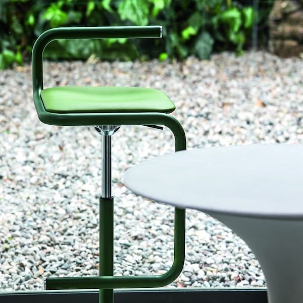 Designed By Enzo Berti, the Five barstool from Bross Italy has an adjustable column, back frame, and footrest in lacquered or satin chromed metal. The seat comes in beechwood, oakwood or upholstered (www.bross-italy.com).