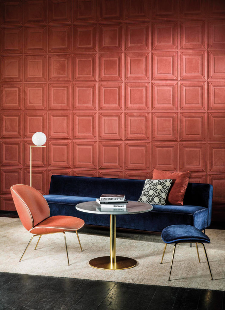 The Caisson pattern from Arte International’s Spectra collection is a three-dimensional wallcovering which is smooth to the touch. Available from Femont Galvan in the Marbella Club (www.femontgalvan.com), Casasola Décor near Torre