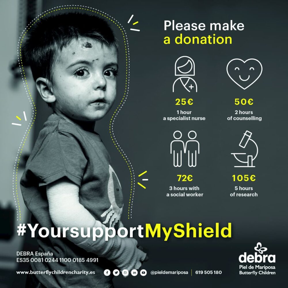 The coronavirus outbreak has had an especially devastating effect on charities. The DEBRA organisation in Spain, for example, reports that it is struggling through an “unprecedented time of need”, with the temporary closure of charity shops and the postponement of fundraising events that financially support the Butterfly Children’s charity. “Now more than ever we need your support to secure the future of the charity and the work that we do. Your support is our shield.”