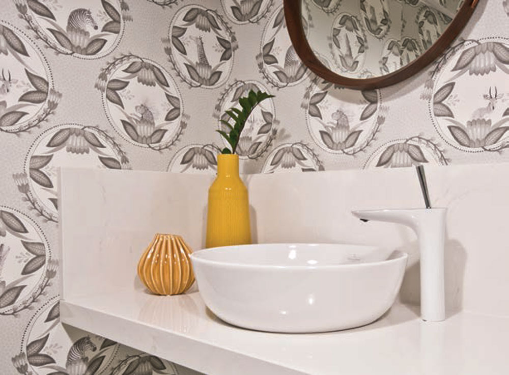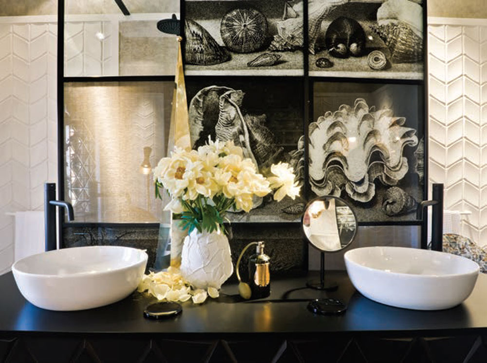 Designer Erico Navazo created a wellness project for Villeroy & Boch (pictured above), transforming a bathroom into an intimate, comfortable and sophisticated oasis with an ocean theme. He used Artis washbasins made from TitanCream, bathroom fittings lacquered in black, rhombus-shaped ceramic wall cladding, and a free-standing Squaro Edge bath manufactured with exclusive Quaryl material. www.villeroy-boch.es