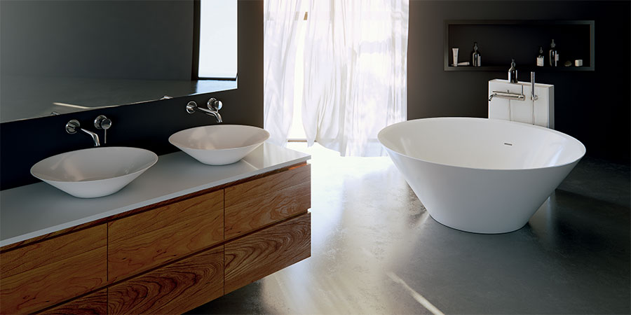This combination of material components creates the unique composite material MINERALICAST®. Its properties allow manufacturing of high-quality products of almost unlimited shapes and efficient technical and functional features. Bathtub finishes are offered in matte and hi-gloss variants. LIGHTCAST®, with its combination of handmade processes with advanced casting technologies, presents the lightweight material option, used in the creation of oversized bathtubs which are much lighter than equivalent ones manufactured with other common materials such as cast marble or solid surface; but at the same time they out-perform their competitors with longevity and durability.
