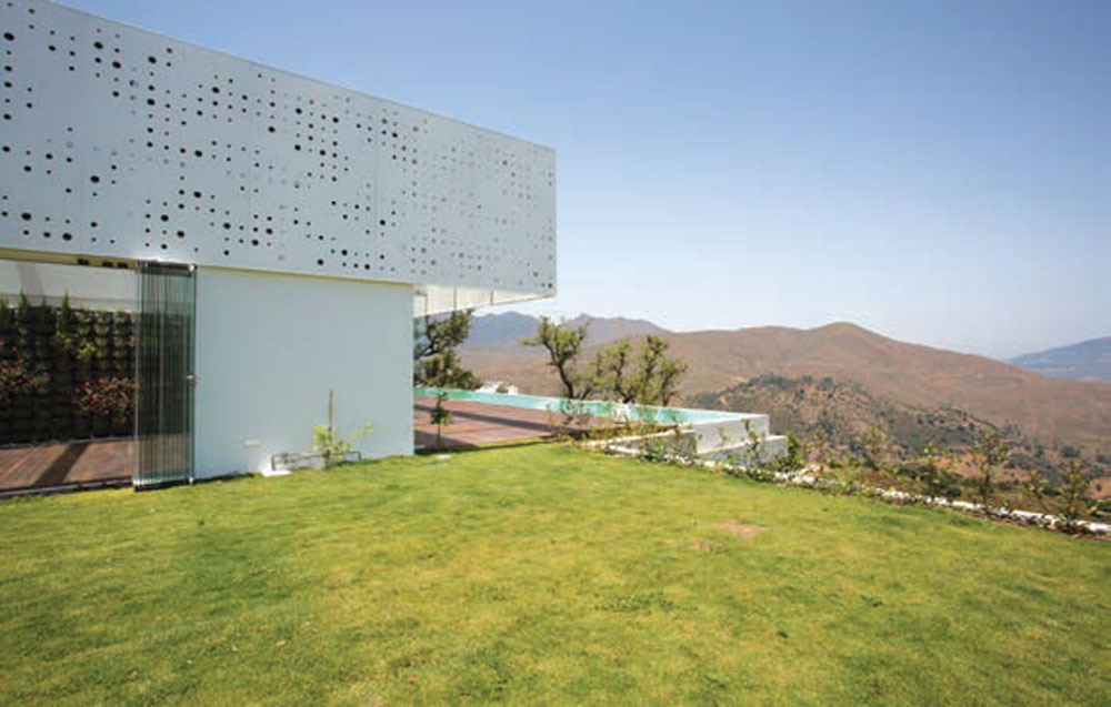 The home was conceived as a gentle and subtle rectangular prism located in a dominant position on the plot, with a glass-oriented floor plan that enhances the landscape and surrounding land. Its clean, open geometric lines reflect the designers’ desire to avoid the area’s customary and predominant concept of building hefty structures. The result is a home that has been devised as a space that opens out to its surroundings and also brings them into every corner of the indoor areas. That is, a geometrical element that defines space based on the principal qualities
