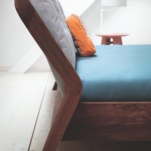 Designed by Formstelle, the Friday Night bed from Zeitraum features a graceful and eye-catching backrest shape, and it comes in American walnut or European oak (www.zeitraum-moebel.de).