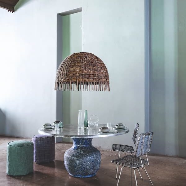 Gervasoni’s Moon table is available with a cast aluminium or white Carrara marble top, and the base in blue ceramic. Shown here with Gervasoni’s Brick handwoven chairs (www.gervasoni1882.it).