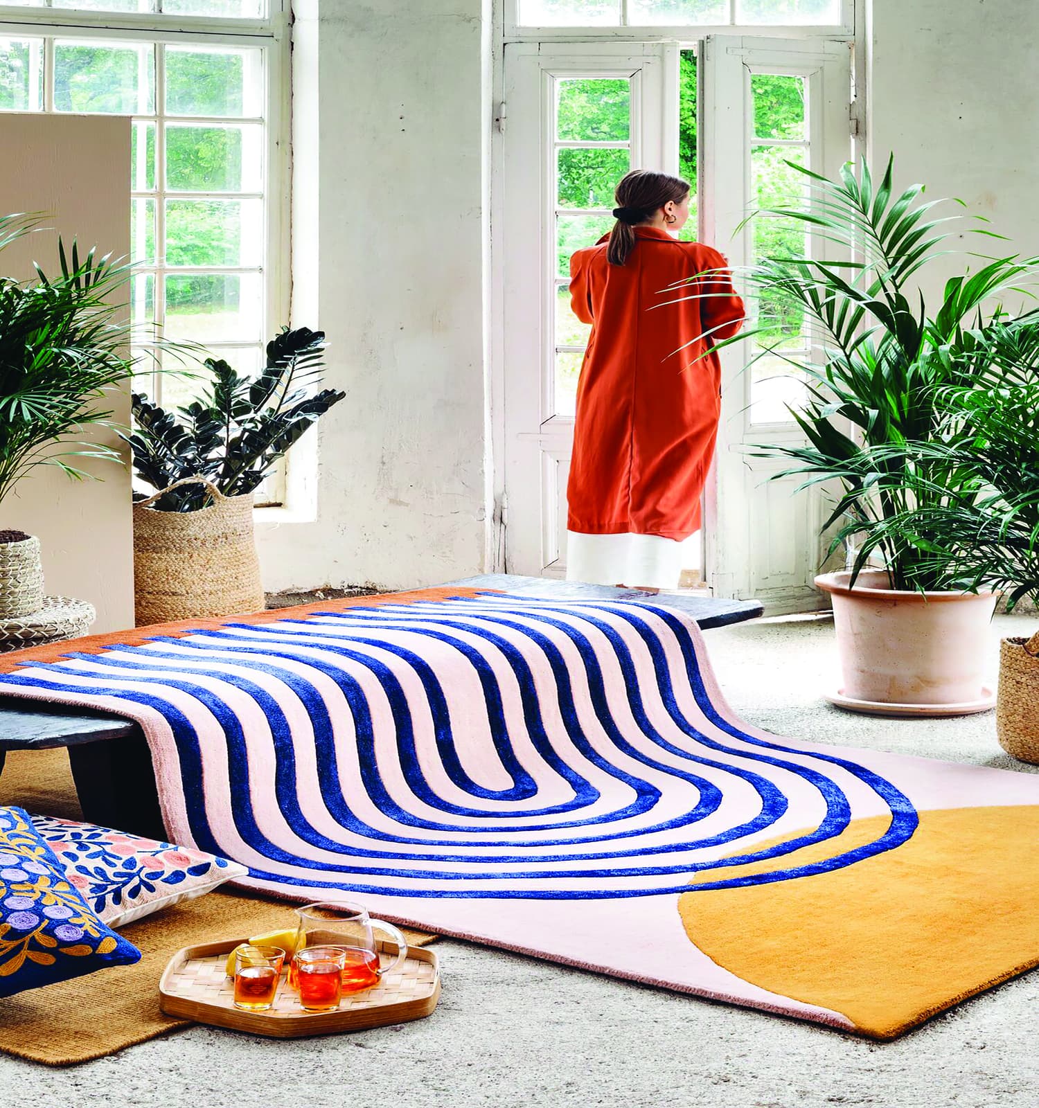 The Atrium rug in pink and gold from Finarte was designed by Marianne Huotari