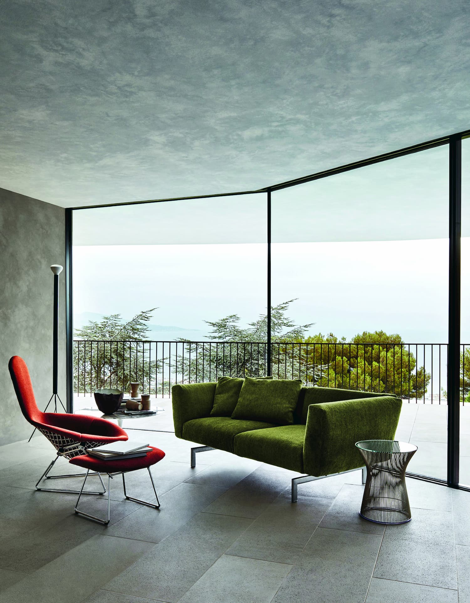 The Avio two-seater sofa designed by Piero Lissoni for Knoll has a slim frame and seating with large and comfortable padded cushions. The Avio comes in 15 different colours and a range of upholstery options. Knoll’s Bird Chair combines space, form and function. Designer Harry Bertoia utilised industrial material and turned it into a work of art. Bertoia’s wire chairs have become iconic within the design world. The Platner side table is both functional and ornamental, with welded curved steel rods that hold a circular glass tabletop