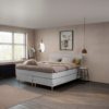 This luxurious bedroom was part of a project carried out by Becara. The four-poster bed is sophisticatedly understated with luxurious bed linen and a crystal chandelier for a touch of glamour.