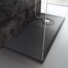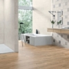 This bathroom from Roca shows how bathrooms do not always have to be sterile and bright. Dark features can look chic and urban, with metallic features such as the taps and towel rail providing a glamorous industrial aesthetic.