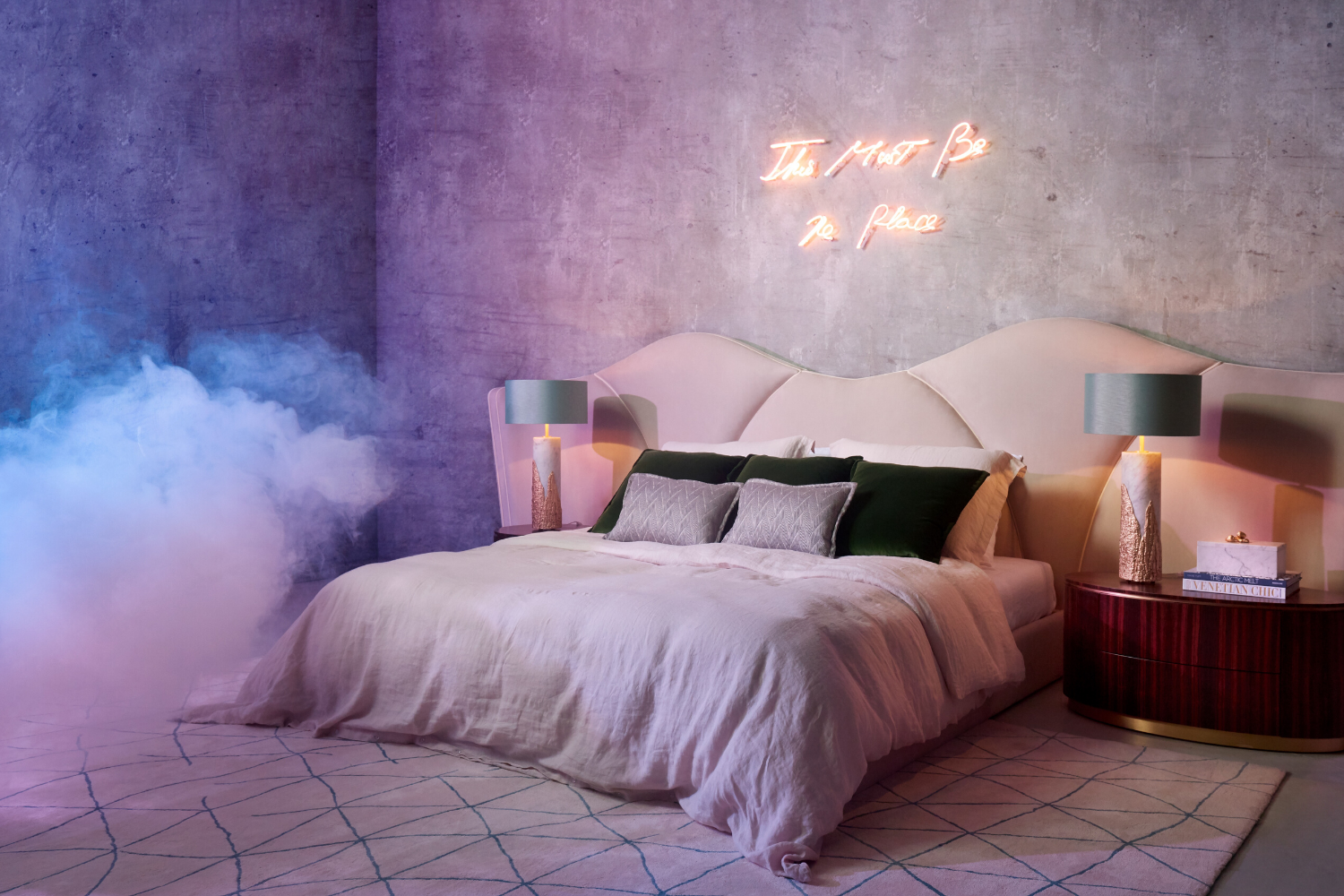 Munna’s Josephine bed celebrates the Art Deco movement. It features a fan-shaped motif with beautiful curved lines and high quality finish.