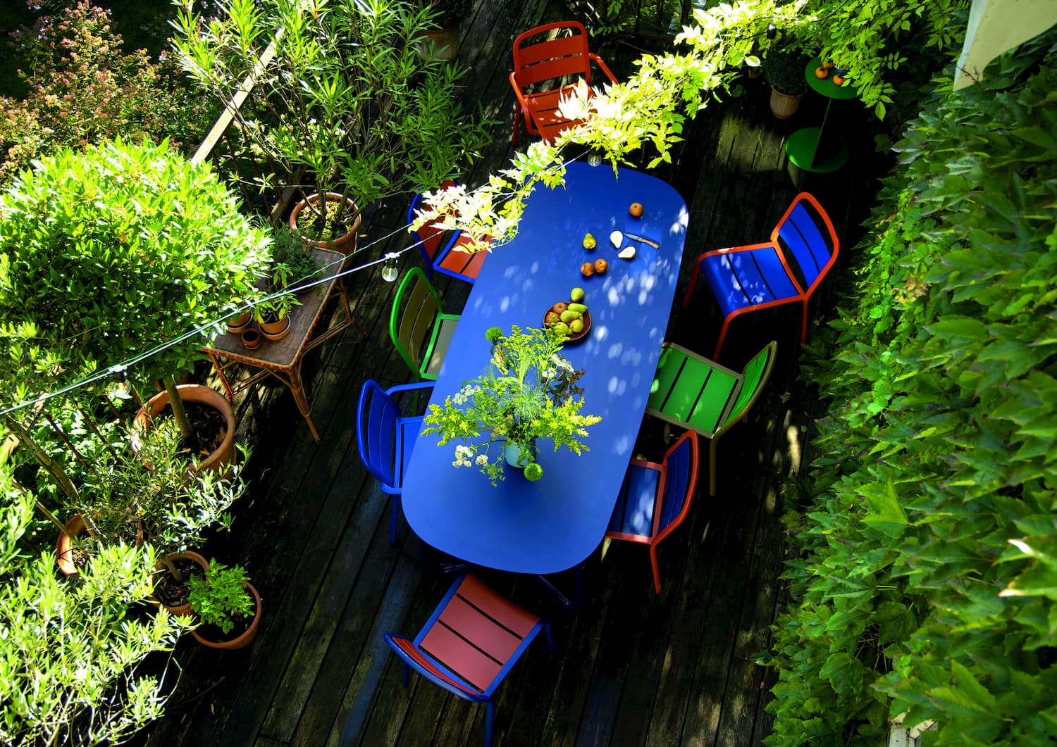 The new Marumi collection from Ego Paris is made from thermos-lacquered aluminium with gloss or matt finishes. The dining tables come in two different sizes: the larger size for areas such as a garden and a smaller version which is more suitable for a terrace or balcony. The collection comes in an array of vibrant tones.