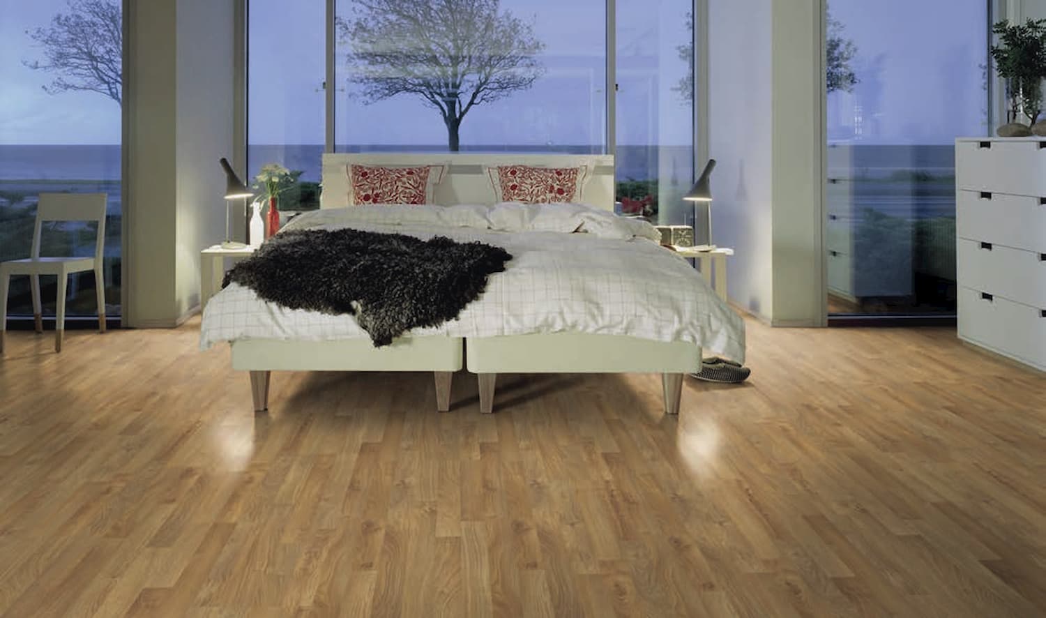 This laminate flooring from Pergo is highlighted by a stunning wooden aesthetic that adds warmth and Scandinavian charm to any room. It has a click system that makes it especially easy to install.