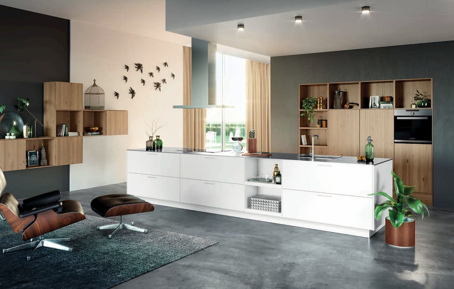 Hacker’s Polarweiss kitchen range combines wild light oak veneer with white satin lacquer to offer a fresh and contemporary look.