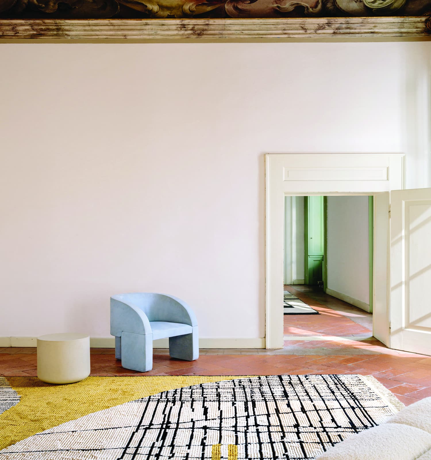 Designed by Giuseppe di Costanzo for cc-tapis, the new Segni Minimi collection comes in six versions. Segni Minimi is a collection of drawings, sketches and digital collages of dreamlike compositions and imaginary scenarios inspired by architecture along the Mediterranean and from the designer’s home city of Naples. These compositions have been translated into hand-knotted rugs, using a knotting technique that expresses the graphic style of the original drawings