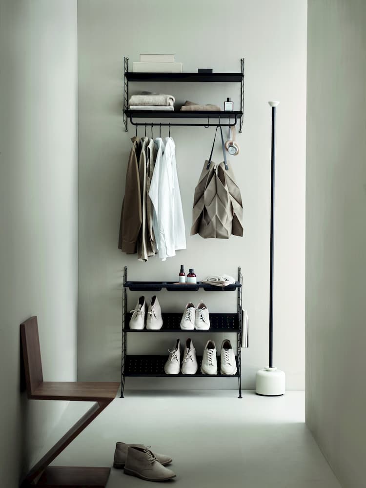This multifaceted storage system from Swedish company String is ideal for a hallway, keeping every-thing on display but at the same time well-organised.