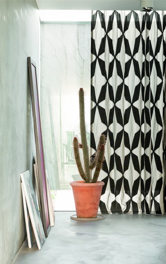 The Super Scale design from Chivasso’s Garden Route collection is made from linen and polyester. The bold black and white geometric design brings a focal point to a neutral room.