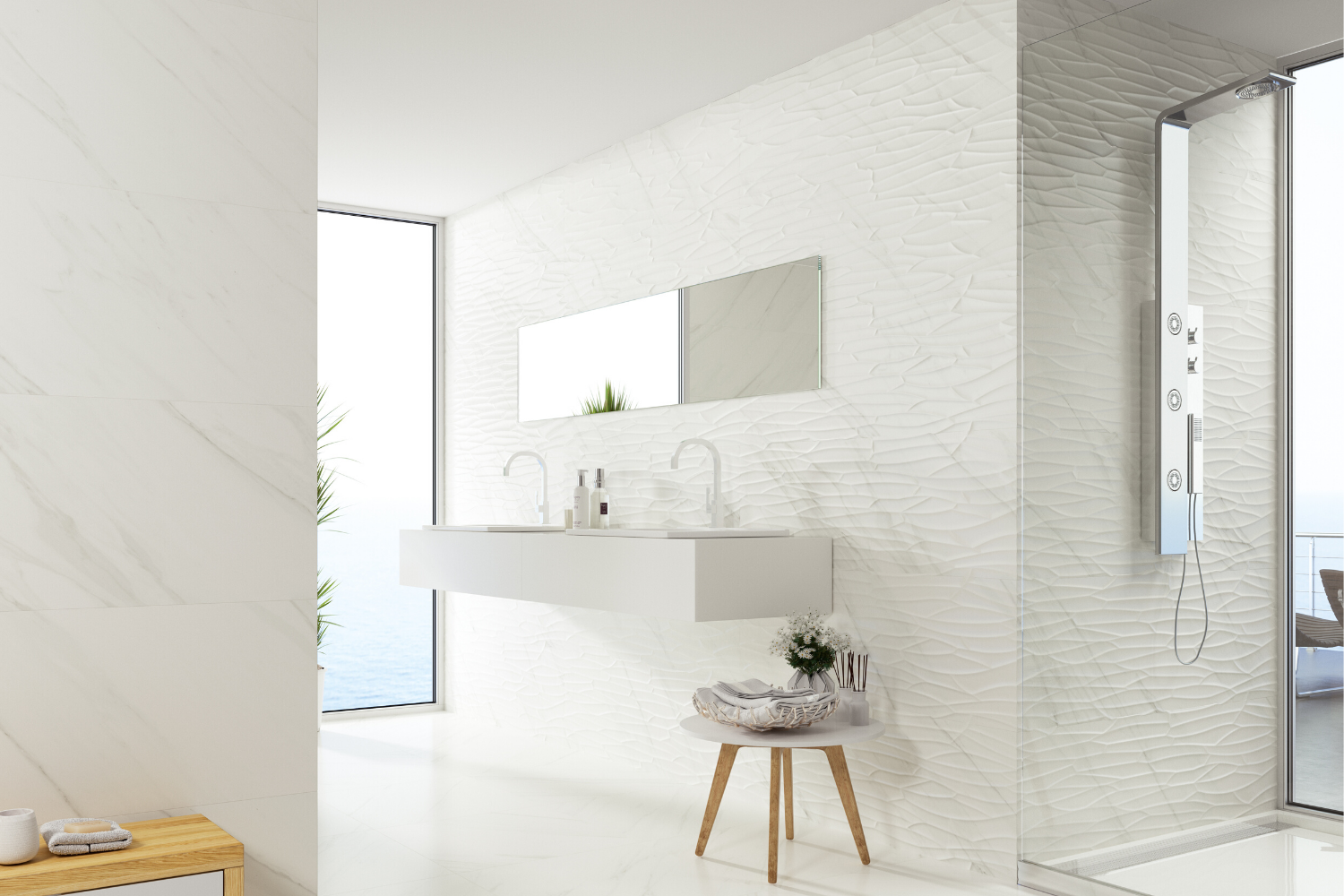 Textured to add dimension, the Tasos tile from Baldocer is made from porcelain with a satin finish.