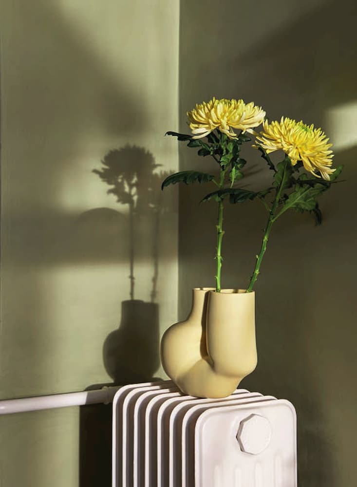 The Chubby Vase from Hay provides a contemporary twist to the traditional flower vase. This playful design, created by Wang & Söderström, is organically shaped in the design studio before being printed and moulded in porcelain and stoneware at a ceramic factory, and it comes in either soft yellow or olive green.