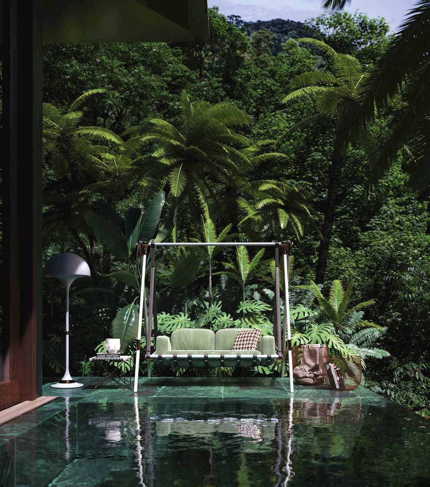The Fable Swing Sofa from MyFace adds a touch of luxury to your outdoor space. It is a modern interpretation of a traditional swing that invites you to relax on this magical floating seat. It has lacquered stainless steel and copper joints.