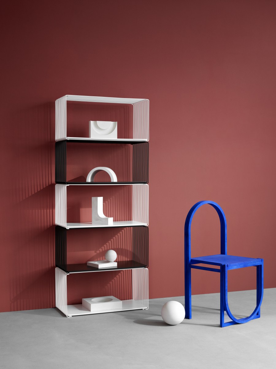 Designed by Verner Panton, the Pantone Wire modular shelving unit features a light industrial design and comes in two different depths in chrome or lacquer. It can be placed on the floor, hung or attached to the wall.