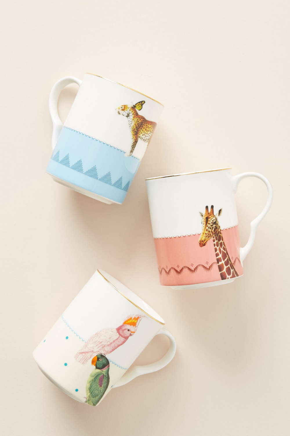 These glorious cups with a ridged handle depicting wildlife feature gold trimming and the trademark bumblebee buzzing around the rim.