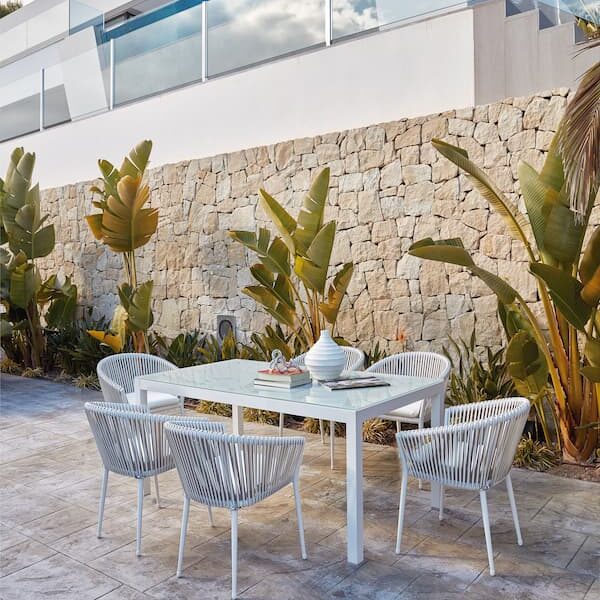 The Joenfa Muses is an outdoor dining chair made from polyethylene UV-resistant wicker and an electrostatic powder coating finish with an aluminium frame. Available directly from De Tropen on the Autovía del Mediterráneo A7, Km. 272, Vélez-Málaga, or you can buy online at www.detropen.es.
