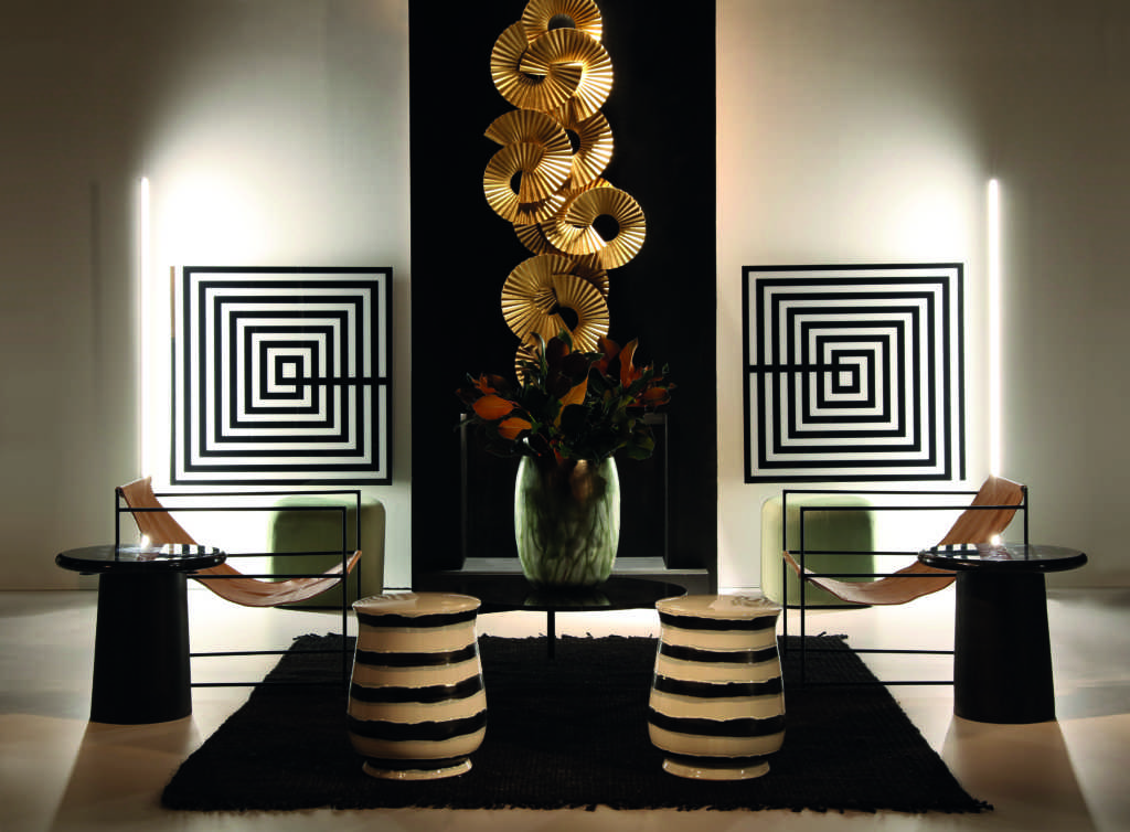 Below This living room from Thai Natura achieves its striking look with black and white clean lines and geo-metric designs. Thai Natura is available through Vintage Point in Pol. Ind. Nue-va Campana in Nueva Andalucía (www. vintagepoint.es) and Miccoli Homes by Daiane Oliveira in San Pedro de Alcán-tara (www.miccolihomes.com).