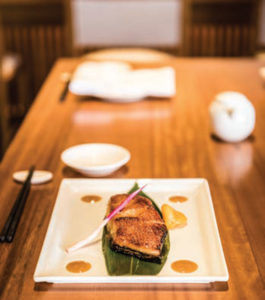 Interior designer Jean-Pierre Martel, together with Studio PCH, designed the restaurant to create a contemporary, natural feel and look with wooden floors, ceilings, walls, tables and chairs highlighted by the white accents of seat cushions, tableware and napkins. There are indoor and outdoor dining areas, an open kitchen and soft lighting to provide a welcoming ambience.