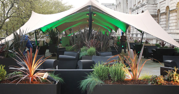 In the public sector, Safara Stretch Tents are a great choice for events such as weddings, the presentation of a product or service, and parties or functions for hotels, beach clubs, bars and restaurants. For company sales they are also a great advertising tool as the tents can be customised with corporate logos to publicise your brand. Along with the ability to be erected almost anywhere, they also protect customers and guests from the elements all year round, and for residential areas the tents can be incorporated with garden items, plants, pools and outdoor living areas.