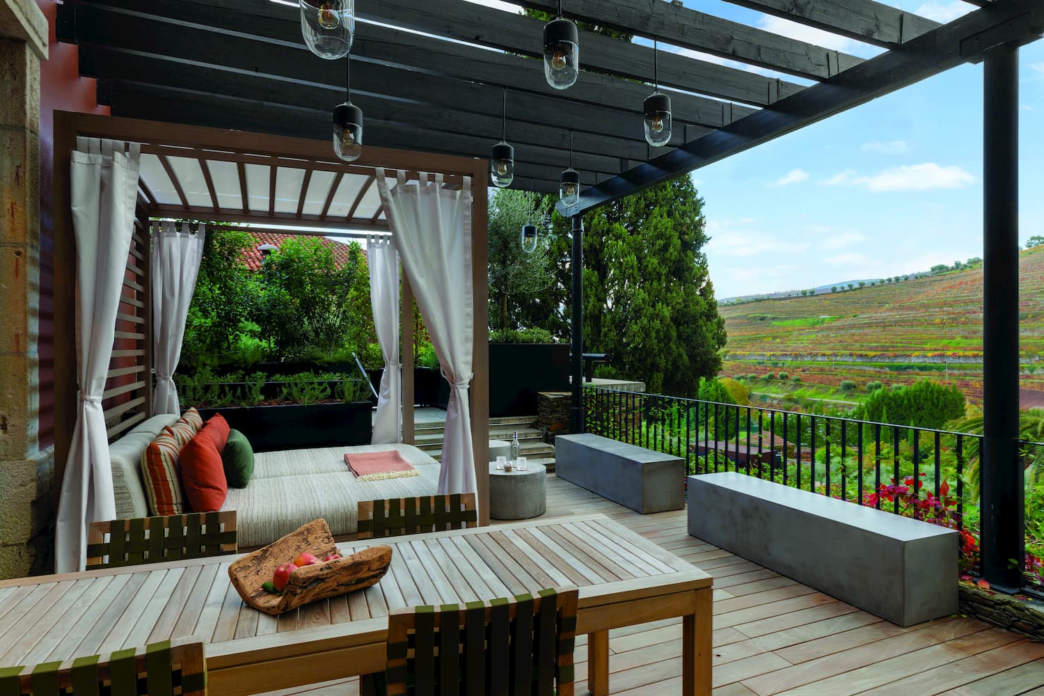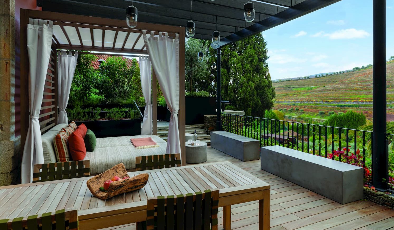 The spa also comprises a heated indoor pool with water jets, an outdoor pool and refreshment bar, and a gym with the latest exercise equipment and professional guidance. There are Six Senses specialty treatments and multi-day programmes, together with locally-inspired therapies – some of which are grape and citrus fruit based. Guests can also take advantage of an interactive wellness workshop, The Alchemy Bar, and work with a wide variety of local herbs, fruits and spice to create artisanal and entirely organic laundry products, kitchen pharmacy potions, body scrubs, face and hair masks, lip balms and home fragrances. For those seeking the ultimate in luxury, the Quinta Vineyard Suite extends over 95 square metres on the top floor of an exclusive wing of the hotel, with a spacious bedroom, bathroom and living areas. Its expansive wooden deck terrace is equipped with a hot tub, day bed and dining area, all offering spectacular views over the vineyards.