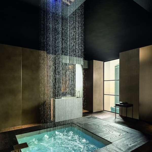 This stunning bathroom by Modulnova incorporates the elegant processing of Pietra Piasentina for the large, floor-standing block that includes a washbasin. The mini pool, equipped with spa bath jets, Airpool system and chromotherapy and it has an LED shower head above it that offers tropical rain, an energising waterfall, a vaporiser and chromotherapy. Modulnova is situated in Avda. Salamanca 12 in San Pedro de Alcántara (www.modulnovamarbella.com).