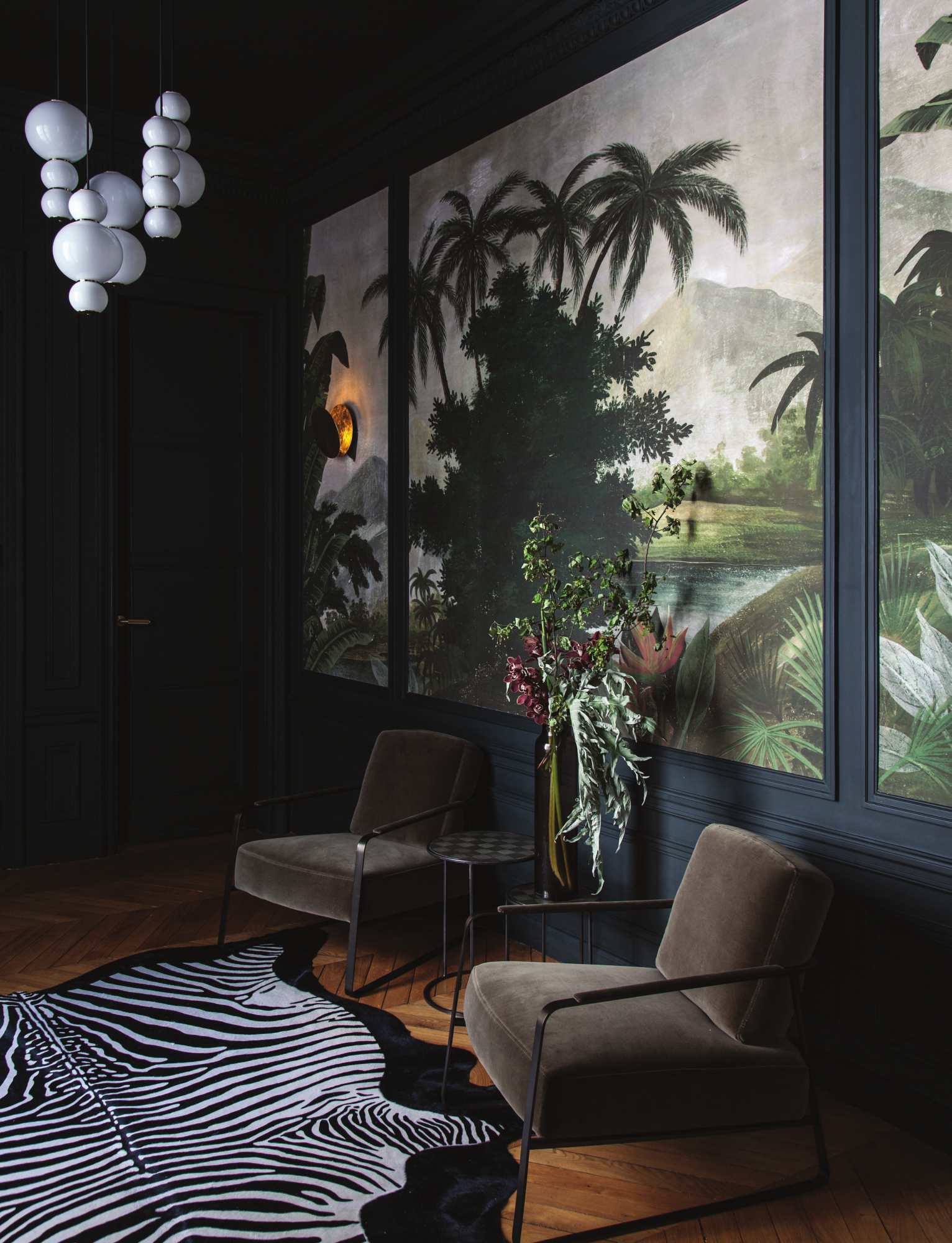 The Pearls chandelier from Forma genda comes in various versions. This installation was undertaken by Atelier DAAA in Paris for their Parc Monceau project. Formagenda is available through Nomad Studio One in Edif. Don Amaro II in Sabi nillas (www.nomadstudioone.com) .