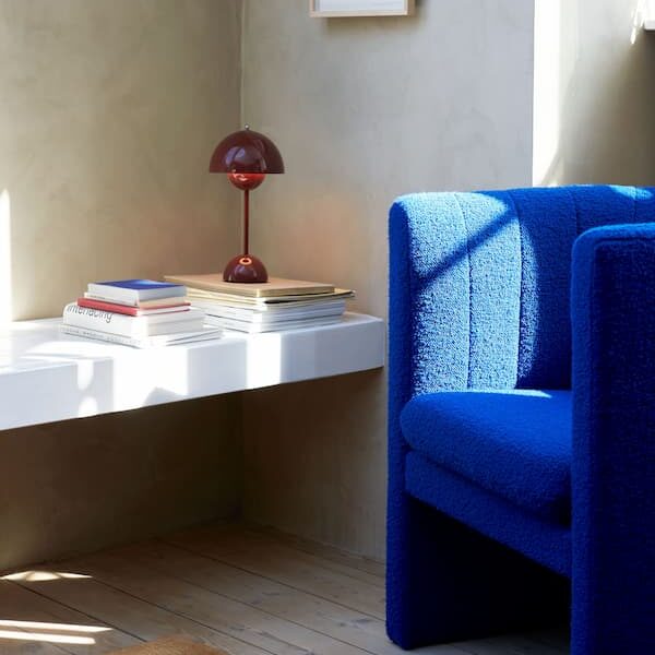 The vibrant Loafer SC23 lounge chair in Karandash from &Tradition comfortably embraces the person sitting in it with its wrap-around back. &Tradition is available from BoConcept Plus Store on the Mijas Road and in C. de Negocios Oasis in Marbella (www.plusstore.es).