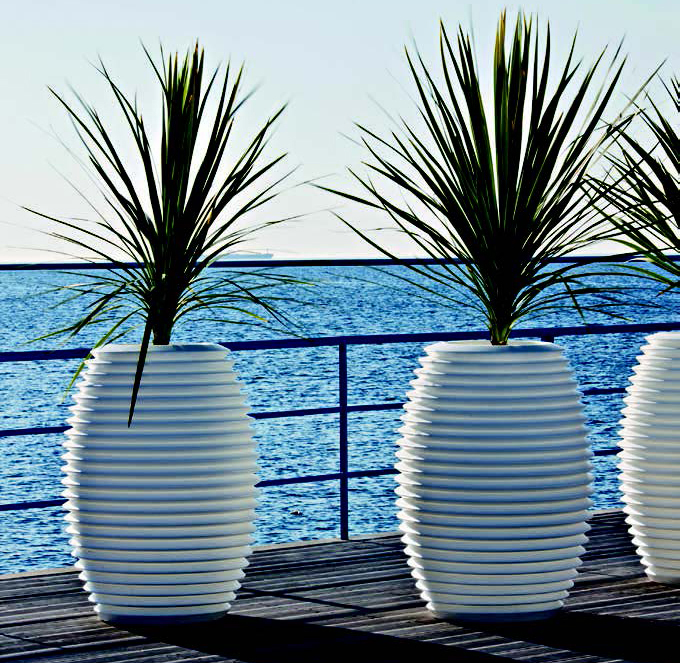 Below, Serralunga’s Top Pot is a large stable plant pot which won the Design Press Award ICFF in New York. It is made of linear low-density polyethylene from rotational moulding, comes in white, silver, black and red and can also have an integrated internal light. Serralunga is available from Siesta Interior Design in Centro Plaza, Nueva Andalucía (www.siestainteriordesign.com) and Femont Galvan in the Marbella Club (www.femontgalvan.com).
